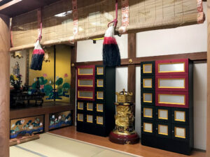 静岡県に佇む寺院に弊社製造の納骨壇を納入しました。 須弥壇の近くに格納された納骨壇。貴重なスペースを有効活用しました。 移動式・横型納骨壇 木製の本体・扉に、光沢のある化粧板を貼りました。金色の装飾金具が厳かな雰囲気を醸 […]